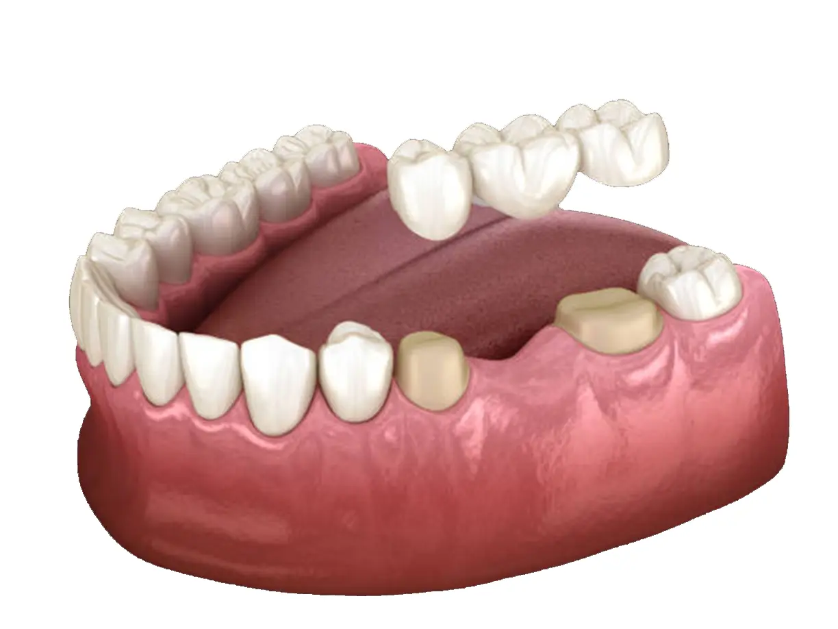 A dental bridge fills the gap left by missing teeth, “bridging” the space to restore your smile and prevent remaining teeth from shifting. Our fixed bridges are anchored to natural teeth or implants on either side of the gap, providing a secure, permanent solution that looks and functions like natural teeth. Bridges help maintain proper bite alignment and facial structure while improving your ability to eat and speak comfortably.