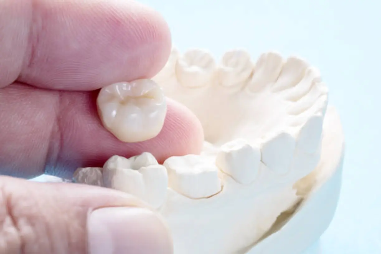 Dental crowns provide protection and strength for teeth that have been significantly damaged or weakened. Our beautiful porcelain crowns completely cover the visible portion of your tooth, restoring its shape, size, and function while blending naturally with your smile. Each crown is custom crafted to match your existing teeth in color, texture, and translucency.